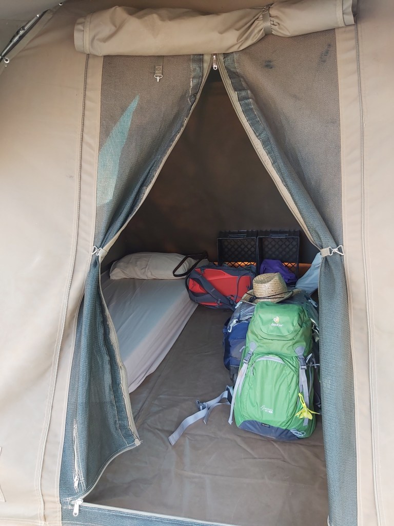 I share the tent with Alexa, another German participant. The tent is not too spacious add has only two mattresses (let´s call it beds) and a rack, barely enough space for a couple of clothes and an alarm clock. I only hope we can keep the mosquitos, spiders, snakes and scorpions outside.