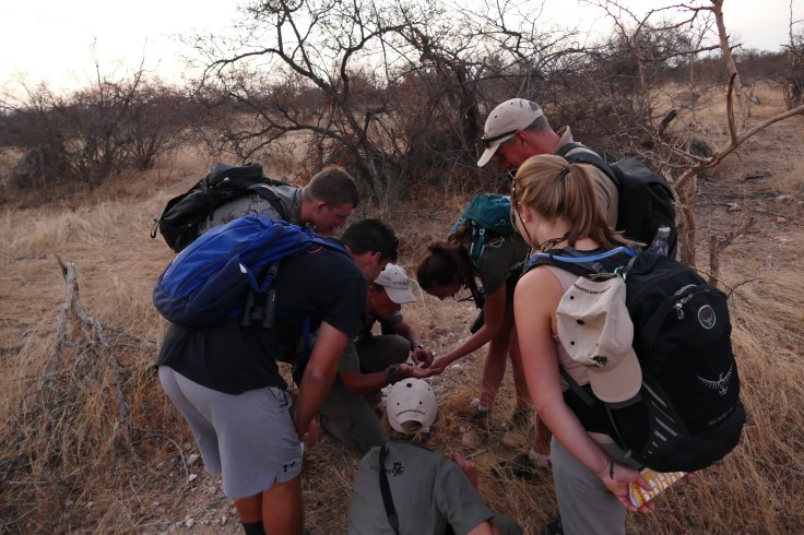 Whenever we find something interesting, we come together to discuss it or to get explanation and information from the instructor.In this case it is a giraffe track.