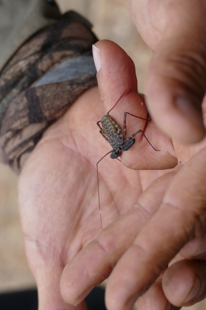 Instructor David found a Tailless whip scorpion under a stone. They look like a mixtrue between a spider, a scorpion, and a crab but are harmless to humans. They neither bite nor are venomous. Still a bit creepy.