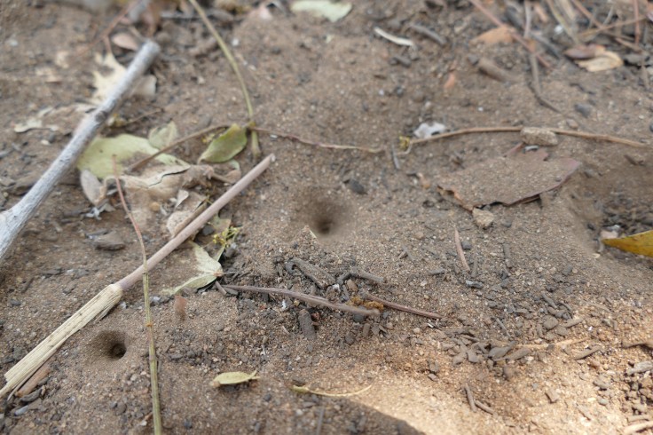 Apart from the “big” things like Elephant, Lion, Rhino or Giraffe, I am always fascinated by the small things as well. Those little conical pits for example belong to one of the “Tiny 5”, the Antlion. To be more specific: the Antlion larvae. At night, the larvae finds a nice spot in a sandy area and creates this conical pit. The larvae itself sits underneath, waiting for prey items, such as ants, to fall down and get trapped. Alarmed by the constant movement of the ant´s attempt to escape, the larvae comes out to catch the ant.