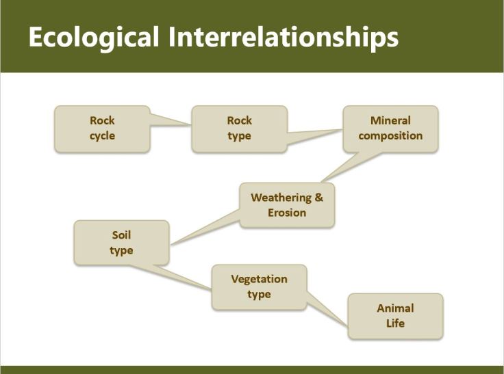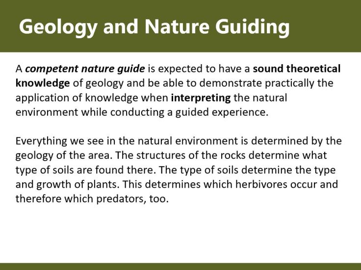 “Everything we see in the natural environment is determined by the geology of the area. The structures of the rocks determine what type of soils are found there. The type of soils determines the type and growth of plants. This determines which herbivores occur and therefore which predators, too.”