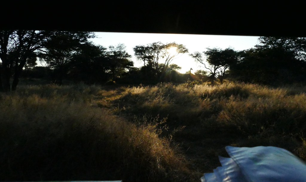 The leopard did not show up in the end. Apart from doves, warthogs, zebras, giraffes and a lonely male impala, nothing else came along. But still I so much enjoyed the time out there. Especially the coming and going of the warthogs and the relaxed “tower of giraffes” was nice to watch. When I initially thought that 12 hours are a long time, at the end, the they passed like nothing and I enjoyed the time with the animals.
