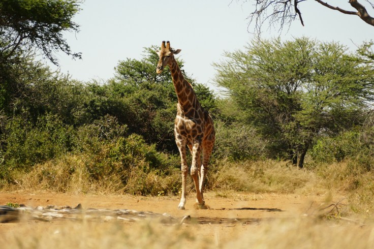 Four plain´s zebras approached the waterhole a couple of minutes later, but when we moved our heads a bit forward to see them better, they probably heard us, became suspicious and left the scene. It is incredible how much noise a human makes with the slightest movement! Sometime later, we silently stepped out for a minute to stretch a bit, when we saw a giraffe starring at us, just like 50 metres away. And then four more heads, and another two. We finally counted around ten individuals, all stalking us – which is their typical behaviour when they see something suspicious. It is impressive how they fit themselves into the environment. You would think that an animal that tall cannot hide, but believe me, they do. They actually don´t really hide; they just stand still and are perfectly camouflaged with their pattern. To me it is still a mystery how they can become so invisible. Anyway, they watched us sneaking back into our hide and continued their way.