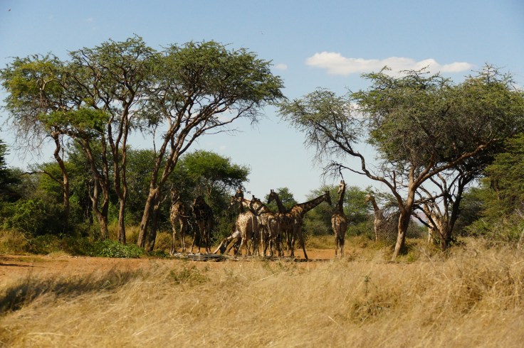 Being the tallest mammal on earth has disadvantages, too: reaching the ground is an issue and makes drinking a risky undertaking. Giraffes must spread and squat their front legs before to get to the ground. It is spectacular to watch but this position makes them also very vulnerable towards predation. Luckily, they have been such a big group, so the vigilance issue in this case was solved!