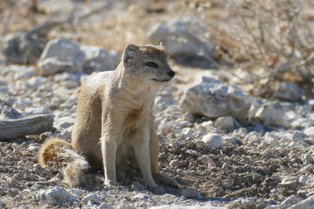 Today I have seen my first Yellow Mongoose (Cynitctis penicillata). While driving, I suddenly saw a quick movement beside the road and then saw this cute little thing running. I immediately slowed down in hope to have a better look and coincidently, I came to stop just beside its den.