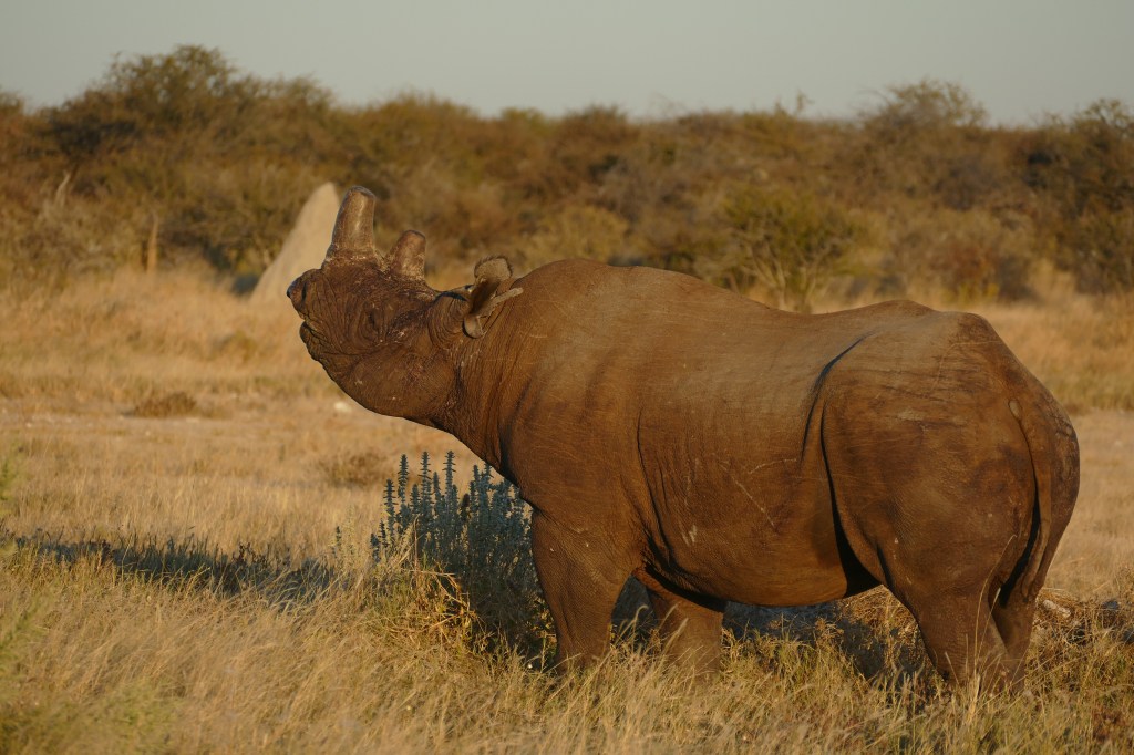 One afternoon, shortly before sunset, this old lady appeared out of nowhere and stood all of a sudden in front of the car on the road. Black Rhino (Diceros bicornis bicornis) can live up to 50 years and this female did obviously went through a lot. She looks tired and you can see from the scars on her bump that she might have had quite some encounters with the bigger cats out there. I am deeply touched and simply enjoy the time that she allows me to stay with her.