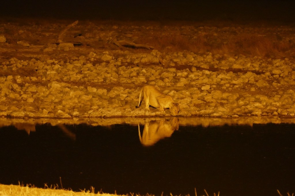 With these pictures I drove back and after a good meal in the evening, I made my way to the waterhole to find out what animals would come to drink at night.