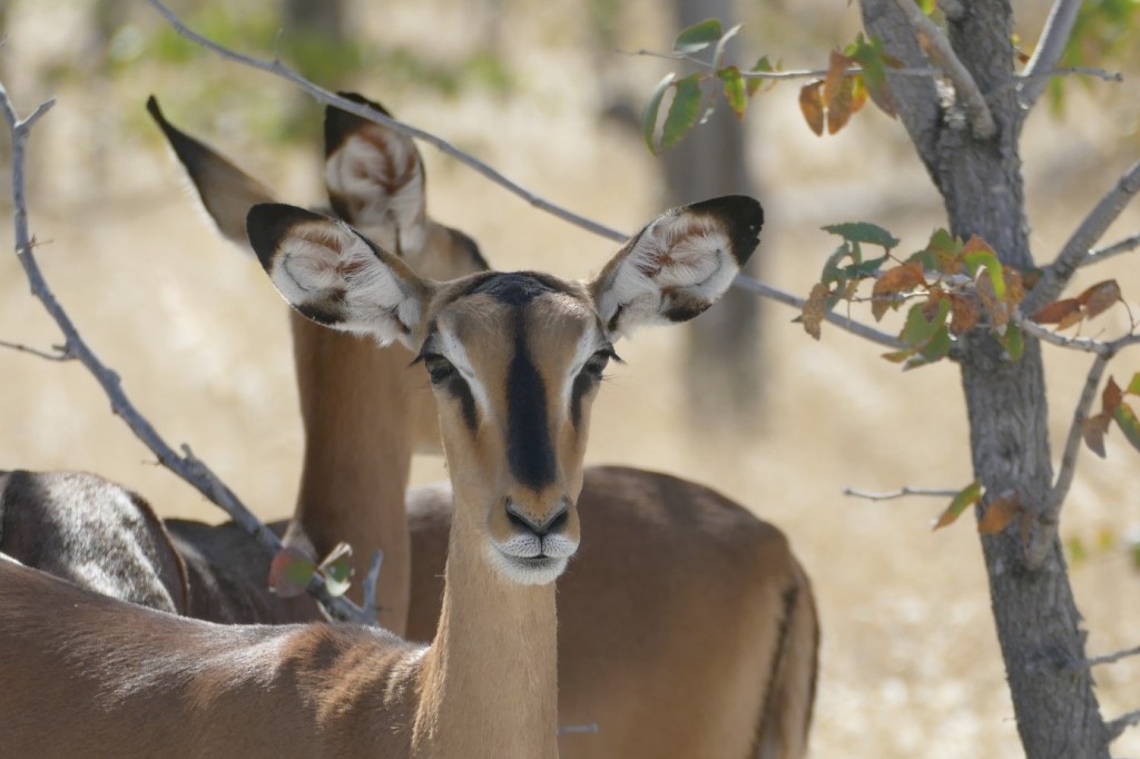 Black-faced impalas (Aepyceros melampus petersi) are a subspecies of the Common impala (Aepyceros melampus melampus) that has adapted to arid areas and that nowadays is nearly endemic to Namibia. Only an estimated population of 3000 individuals are left in the wild.