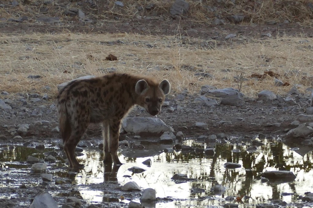 Shortly before sunset, a Black Rhino and a Spotted Hyena came along.