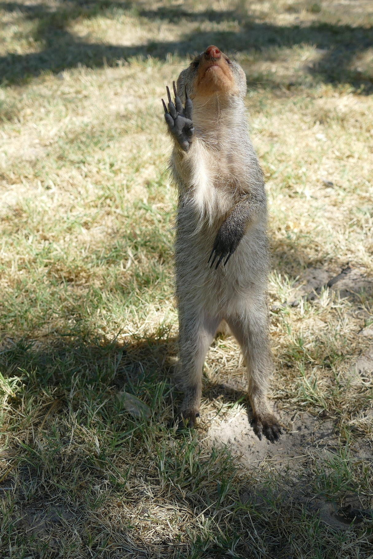 These weasel-like mammals are Yellow mongooses. This cute little thing got obviously a fright when I drove by and headed back to its den. While I still thought it would disappear immediately, another head popped out. They greeted each other gently and simply stayed there for a couple of minutes.