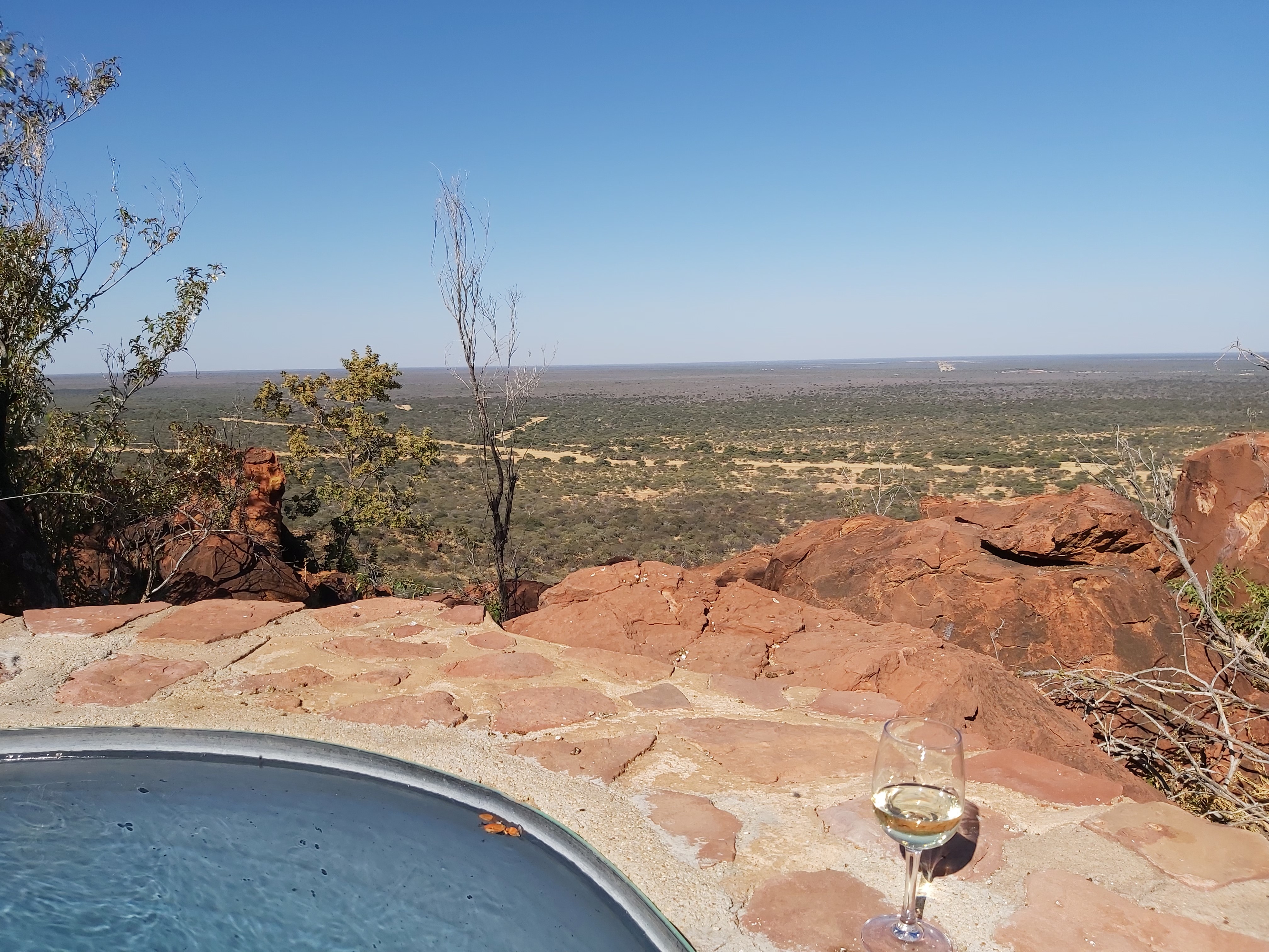 For my last night and after two nights sleeping in the car like a baby, I thought I could treat myself with an upgrade to one of the tented rooms, but received an additional upgrade from the Valley Lodge to Plateau Lodge, with a private swimming pool and a terrace with a stunning view on the savanna plains. Not too bad 😊