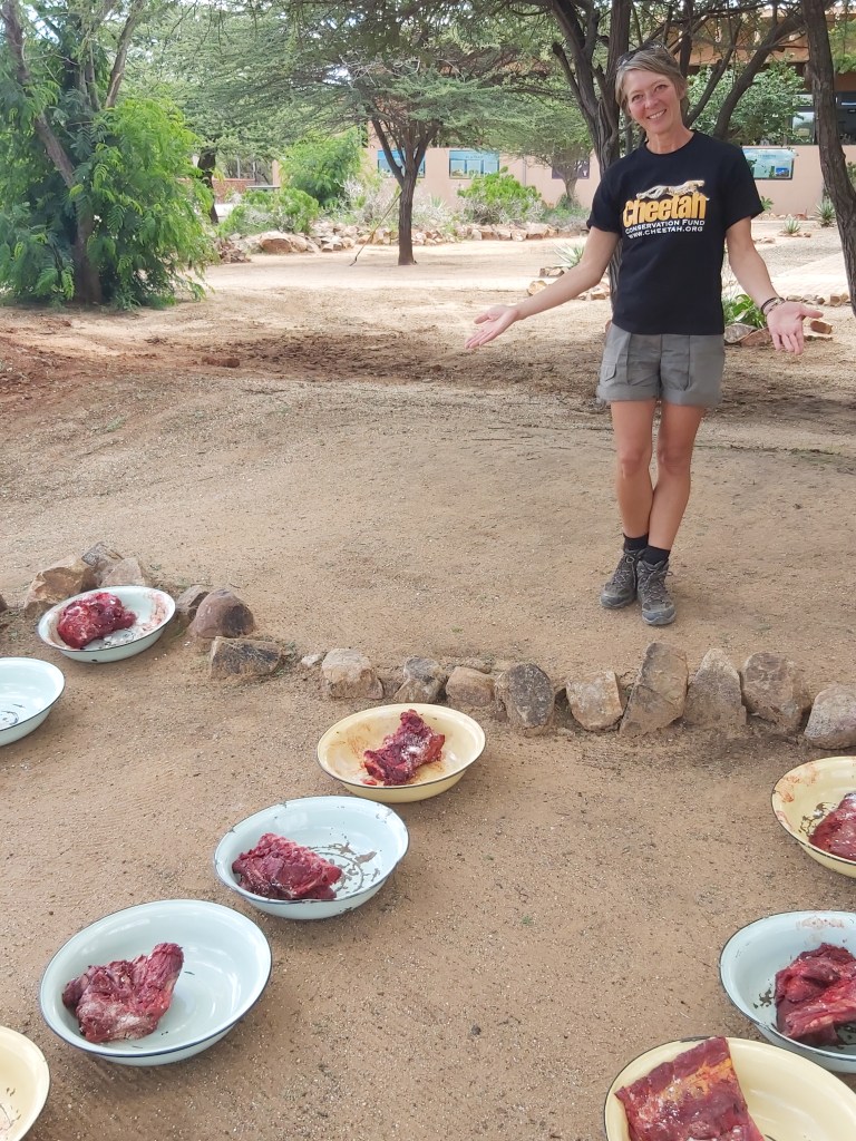 Nevertheless, life went on and especially on a sanctuary, you can´t stop working. CCF hosts around 40 cheetahs. Some must stay in permanent captivity, as they can´t be released due to their circumstances they came in, others will be released into the wild as soon as they are stable enough. Beside other programs, CCF also runs a model farm and an Anatolian shepherd breeding program (LGD – Lifestock Guarding Dogs) as part of their conservational work. All those cheetahs, dogs, sheep and goats need still to be fed and taken care of.