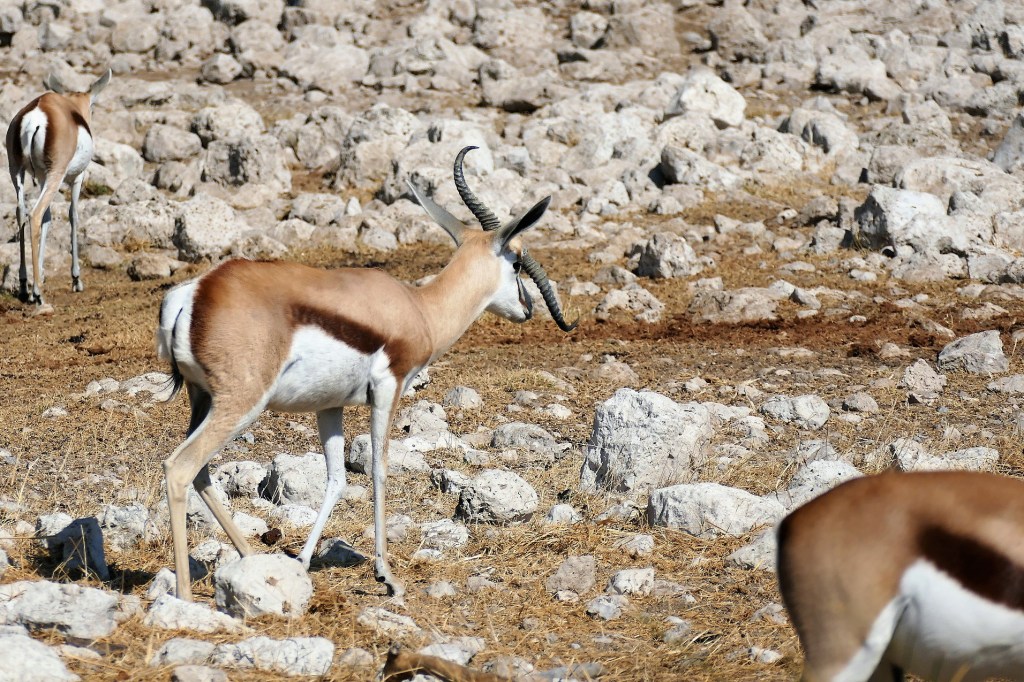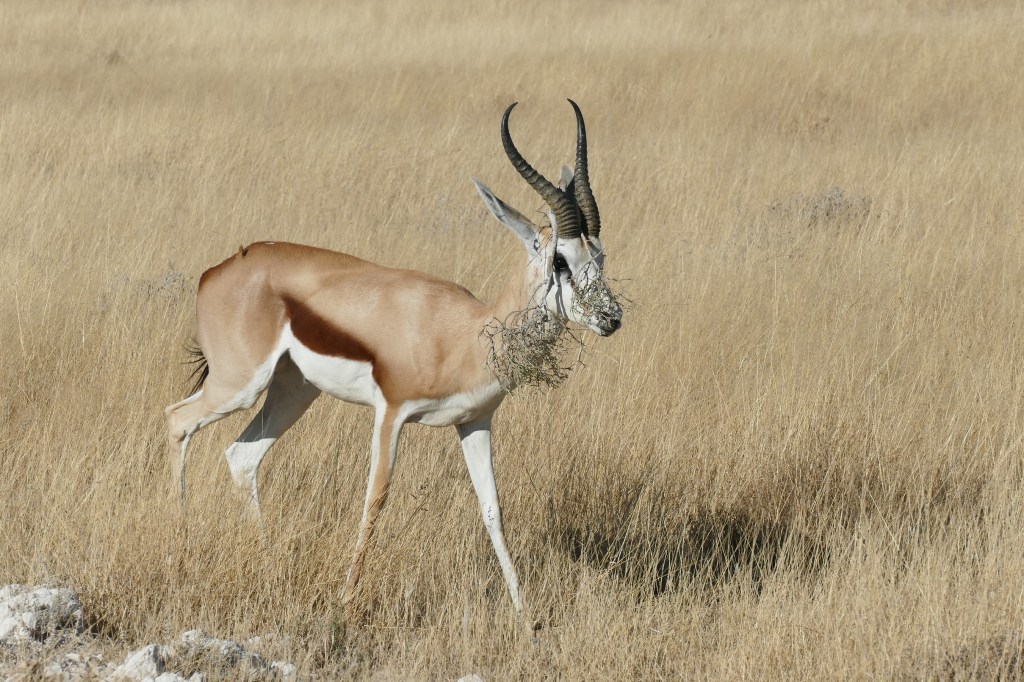 It is rutting season and springbok males viciously defend their territory and females. To do so, they not only fight with others, but also “horn” bushes or even soil, some kind of showing off, as it is often done in the presence of females or rivals.