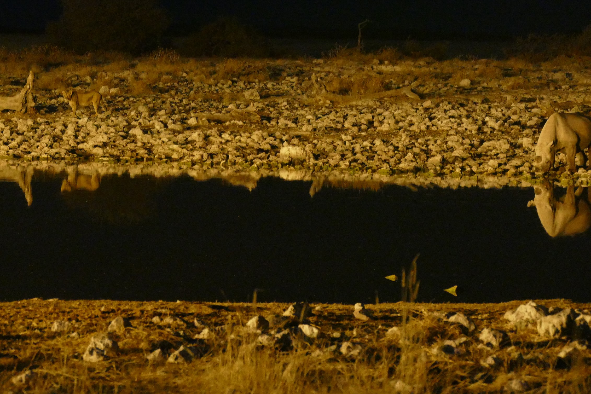 During the day I have the opportunity to accompany him out in the field. In my off-time (afternoon and evenings) I can drive around and the nights I often spent at the camp´s waterhole where I just was lucky to see a Lioness with cubs and a Black rhino, drinking together just a couple of metres away from each other. Although a single lion is not a threat for an adult rhino, it is still an unusual and simply great sighting. While I was amazed by the cubs that were playing just a couple of metres away from where I was standing, I all of a sudden realised that the mom was staring at me. It made me feel a bit uncomfortable cause she was not far but I felt still safe behind the wall and the fence. But then I had a closer look. Where I was standing, the fence is not high and would not be an obstacle at all for a cat. I have never felt so vulnerable! But luckily the lioness did neither consider me prey nor a danger to her cubs. Since then, this is my favourite spot to watch the animals at night. A bit exciting, but so great!