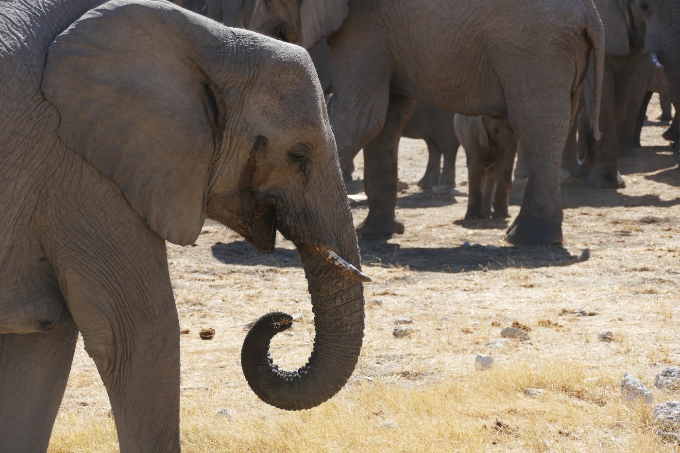 The trunk is enourmously strong and can lift up to 350 kg (yes, cars have been turned over several times, so give the animal its space when approaching it 😊).