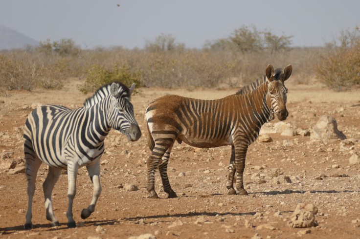 Mountain zebras have white bellies, while the stripes of the Plains zebra stretch all the way to the belly. They appear darker as their dark stripes are closer together and not disrupted by brown ones as in Plain´s. Mountain zebras also have a flap of skin on the throat known as a “dewlap”, which plains zebras lack. But they like dustbathing as much as the Plain´s 😊