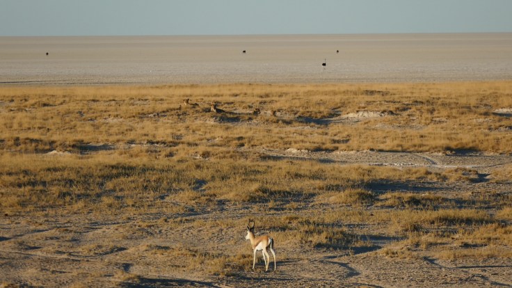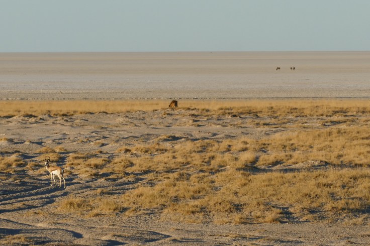 The route in-between Okondeka and Okaukuejo always fascinates me. The area is dominated by grassland on the one side and the Etosha Pan on the other one.