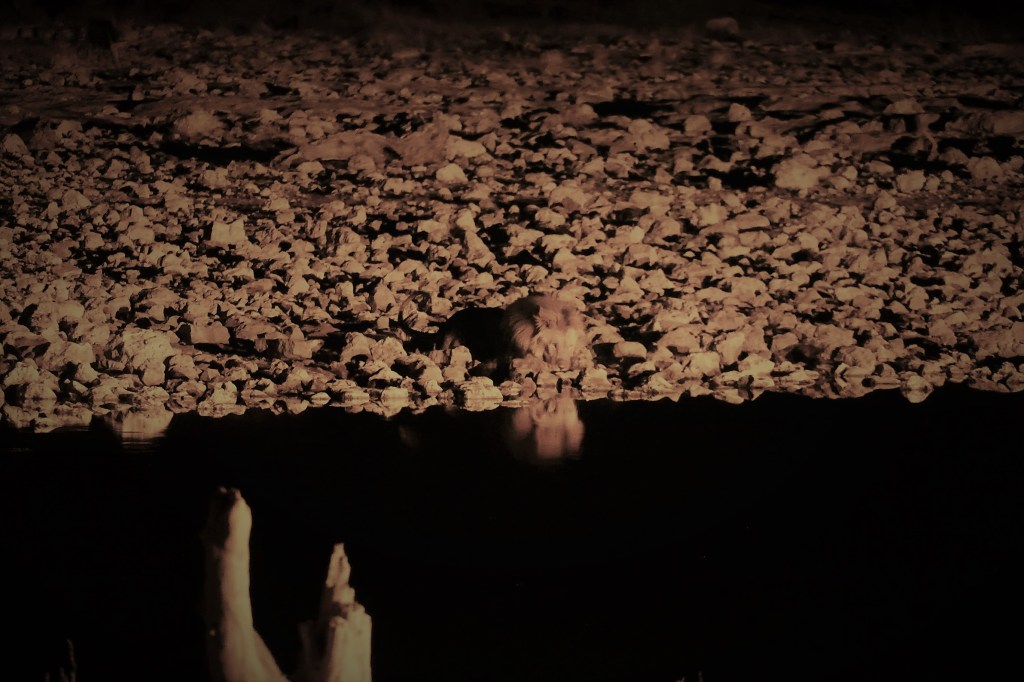 At least I was gifted with a nice close-up of the big male at the Okaukuejo waterhole at night.