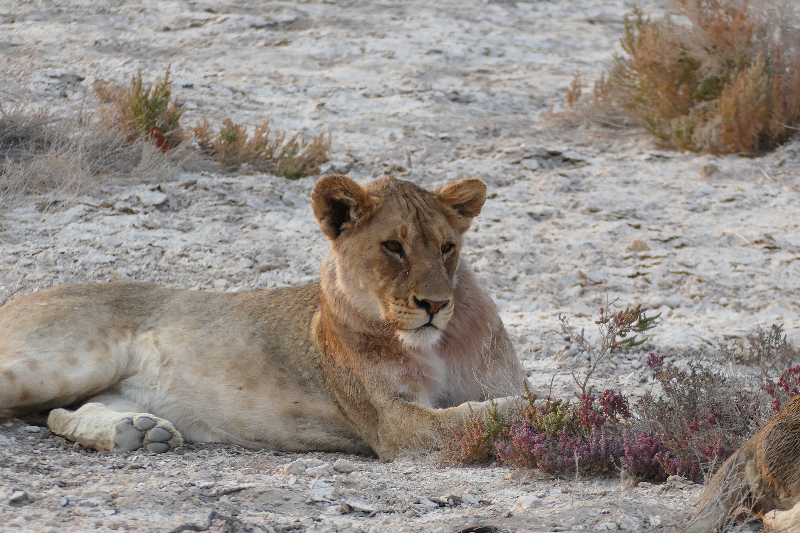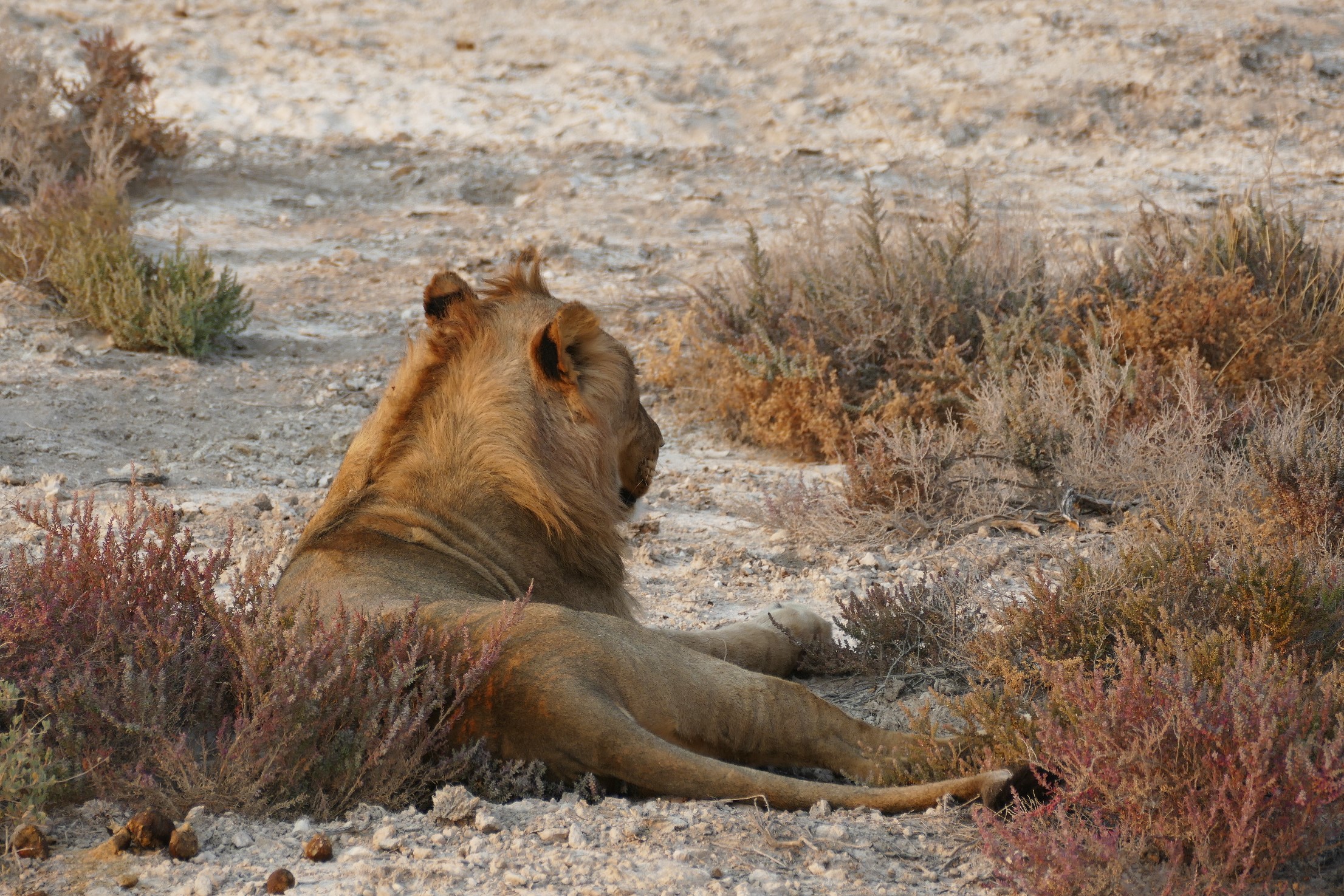 A pride of young lions was hanging around close to the road and I parked the car in a good viewing position. I counted about eight lions, most of them doing what they do best: resting.