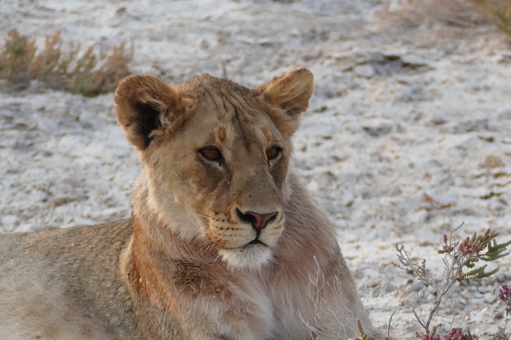 One stood right on the road and stared back to the lioness.