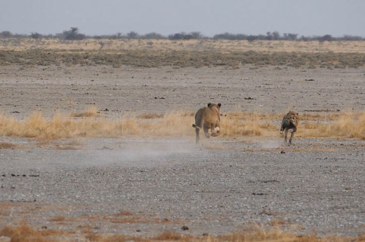 The lioness settled right in front of the hyena and acted more like an innocent bystander. But then she made her chase! A little one 😊