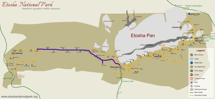 I must confess that “going back” really came into my mind. I am not homesick, not at all. But of course, I miss family, friends, and neighbours. I have not seen them for months, not in real life, and I especially find it hard to miss parts of their lives. Two friends got babies, my dad got sick, a colleague died … happenings that seem to be so far away, as if they do not belong to my life. “Going back” would mean that these happenings would become reality. A reality that I am not sure I want to go back to. “Going back” would mean to leave this country without even getting to know it properly. I am not ready yet. This year is hopefully not only an exceptional once-in-a-lifetime experience but become a life-changing journey and I am pretty scared that I will fall back into my normal life once I am back in Germany. So “going back” was not an option but instead I made plans to explore the country further! With this in mind, I left Okaukuejo, my “home base” for the last months. I left Okaukuejo, but I was not ready to leave the park. There were (and still are) corners I have not seen, waterholes I have not visited, and roads I have not driven, and I now had enough time to exactly do that.