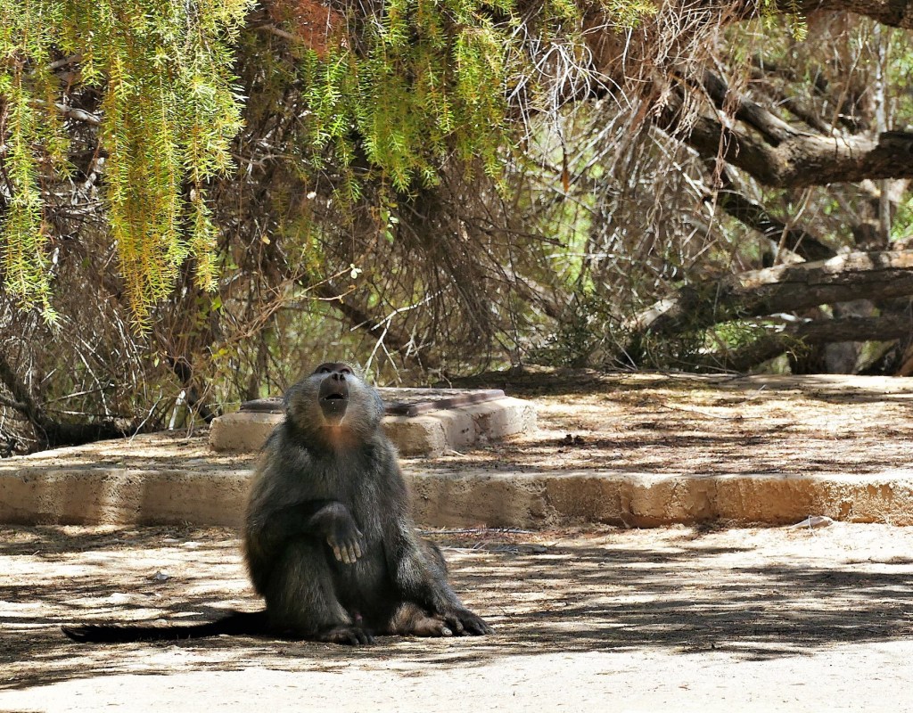 As if that wouldn’t have been enough, when we came back, I learnt that that the baboons had broken into my car and stole the pizza bread I’d prepared the evening before! Can you imagine? They had opened the boot of the Landy, climbed into the car, and took whatever they could grab before the security guy chased them away. And they obviously liked it so much that they came back again later to see if there is more to steal, but I was prepared this time, and weaponed with small stones and a stick (not to hurt but to scare them!) and we played hide-and-seek for a while before they understood I am not giving away anything else!