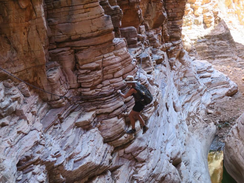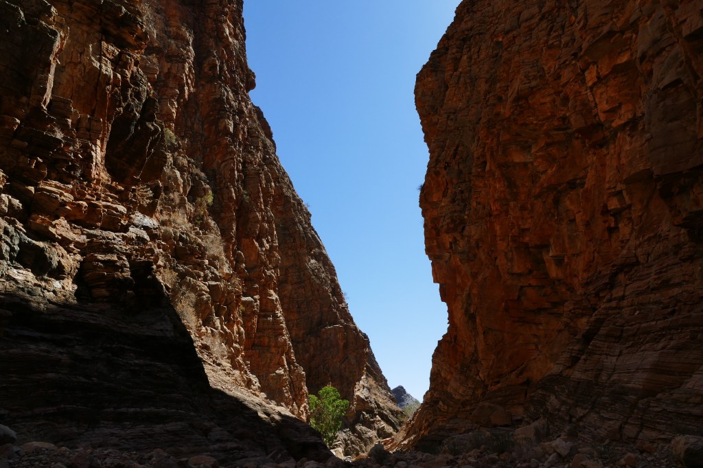 None of us had a printed map but and his navigation was not always getting reception so within the first hour, we already got lost for the first time and had to go back a couple of kilometres, which did not bother me at that point. The trail then led us into a riverbed, full of rocks and steep shist to both sides, which luckily provided some shade.