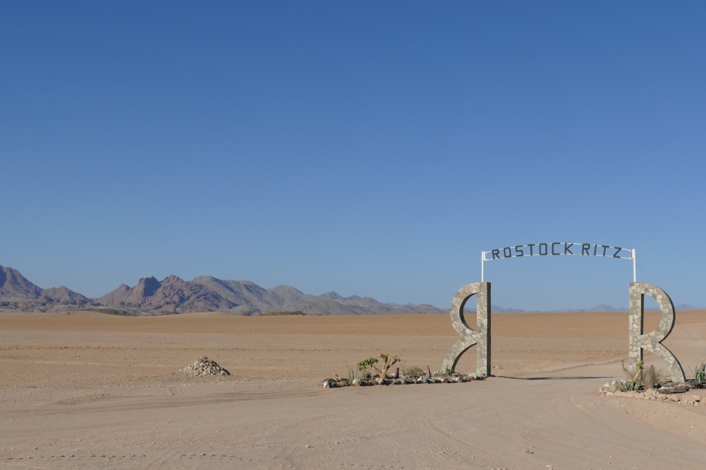 After the Olive trail, I planned to drive all the way up to Walvis bay, but I was so unbelievable tired that I hardly made the 70 km to Solitaire. It’s said they have the best ‘Apfelstrudel’ so of course I had to try it. It was rather an apple crumble but just amazing! Unfortunately, a bit more than expected and it drove me straight into a digestive coma. I had to find an overnight location. There are often signs along the road that announce B&Bs, Lodges, or Campsites, but most of them were another 50 to 70 km inland which I was not willing to drive, so I was thankful when I found one not far from the road: the ‘Rostock Ritz’ … what a name, and what an entry gate