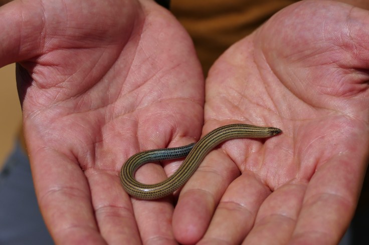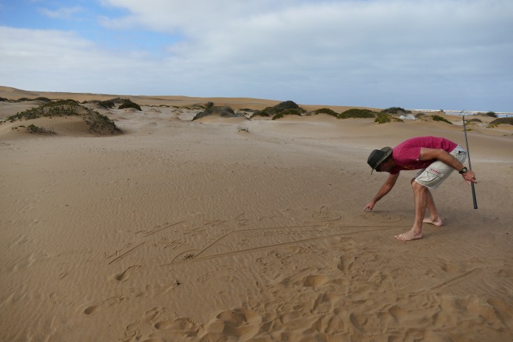 Another rather hidden creature is the Fitzsimon’s Burrowing Skink, a reptile that resembles a snake but is a legless burrowing lizard with highly adapted scales that allow the lizard to move through the sand with very little friction and indeed, when we released it back in the sand it was gone in an eye-blink and without leaving any trace.
