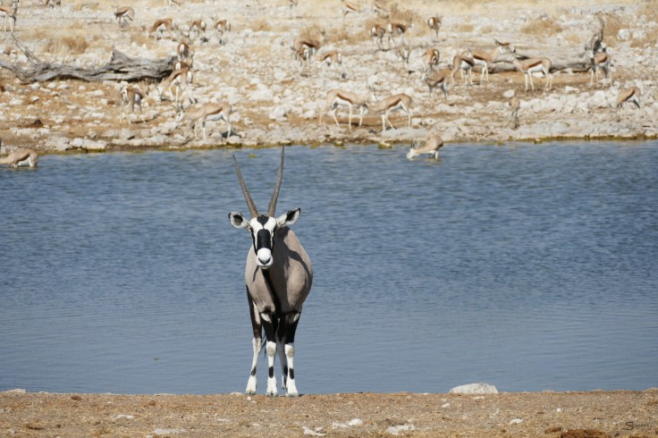 Oryx are exceptionally well equipped to survive in the driest of areas and can go without water for long time (although I see them drink regularly if water is available).