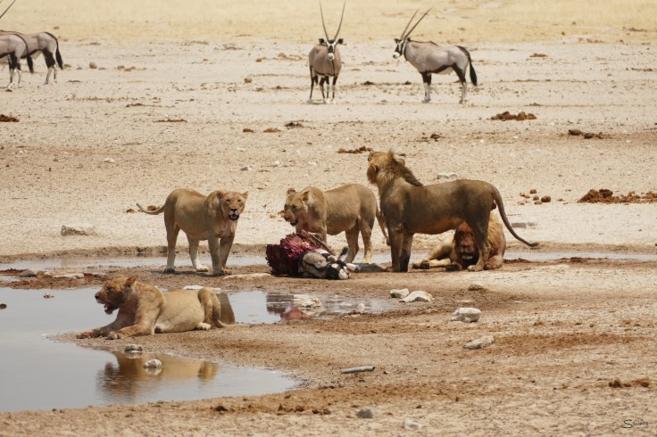 Gemsbok caught by a lion pride (Etosha NP, October 2020)