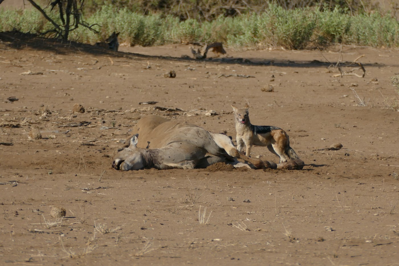 Eventually and exhausted Caracal reached home. Poor Jackal was scratched and bruised from his ordeal.