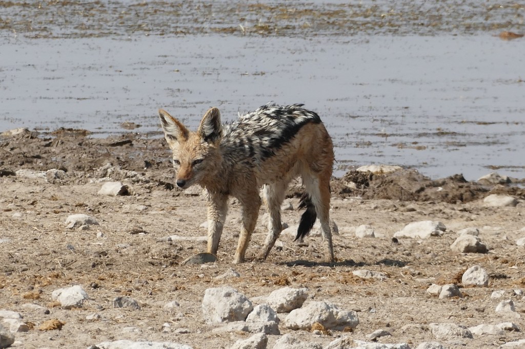 “Once there was a jackal living in the forest. The jackal was roaming in the forest for a long time but could not get any food. At last, it saw a turtle walking nearby a lake.