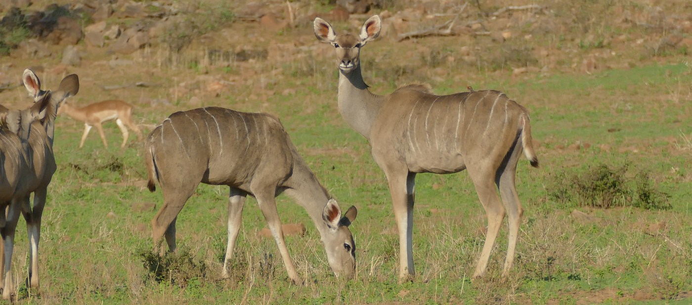 Kudus fight ferociously at this time. You will see them charging each other like maddened knights of long ago, in the days of King Arthur’s Round Table. But something tragic often happens in these sylvan battles. The two animals sometimes fight so ferociously that their spiralling horns get locked into each other in such a way that the poor beasts can no longer disengage from one another. And both of them locked this way can neither feed nor seek water and are helpless before the fangs and the claws of predators. Again and again our forefathers saw this tragic sight – two great animals locked together imprisoned by their spiralling horns and dying in the bush.