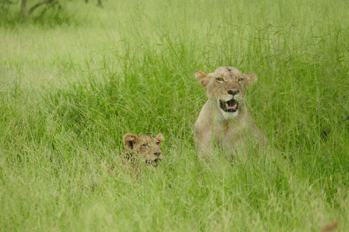Hare took lion for miles and miles around the bushveld and after several hours, lion (who, after all, had been disturbed during his morning sleep) was so weary he could go no further. He lay down in a shady spot and slept.