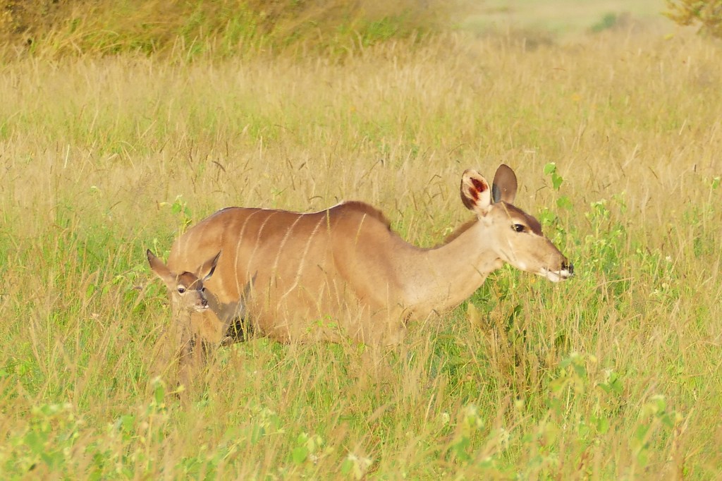 Kudus breed at the end of the rainy season which is different depending on the area we live in. During the breeding season, bothsexes associate. A male takes over a female group and starts “herding” and protecting them.