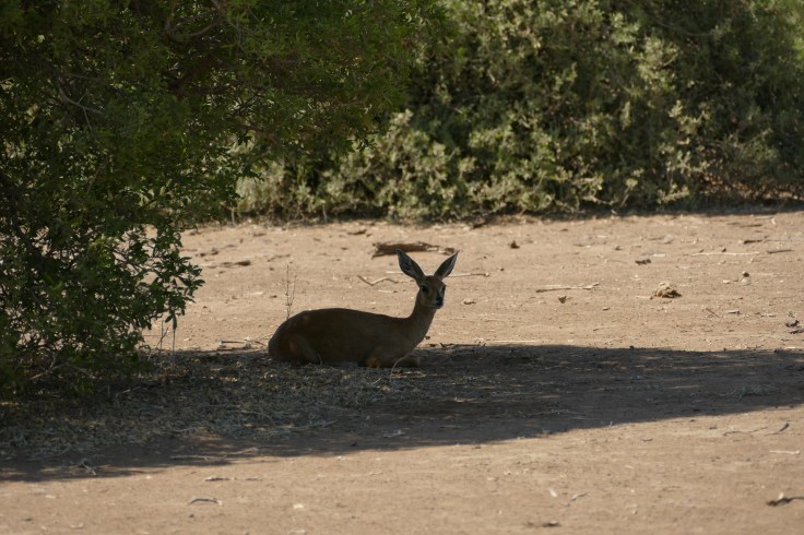 We steenboks are rather silent and communicate with each other by touch or chemicals. We have preorbital glands in front of the eyes, pedal glands in-between hooves and throat glands. By rubbing our head and throat against bushes or scraping with our hooves, we distribute the scent. Scent for us is like a messenger. We not only make clear who´s territory this is, but we can also smell who was around and we females leave information if we are in oestrus and ready to mate.