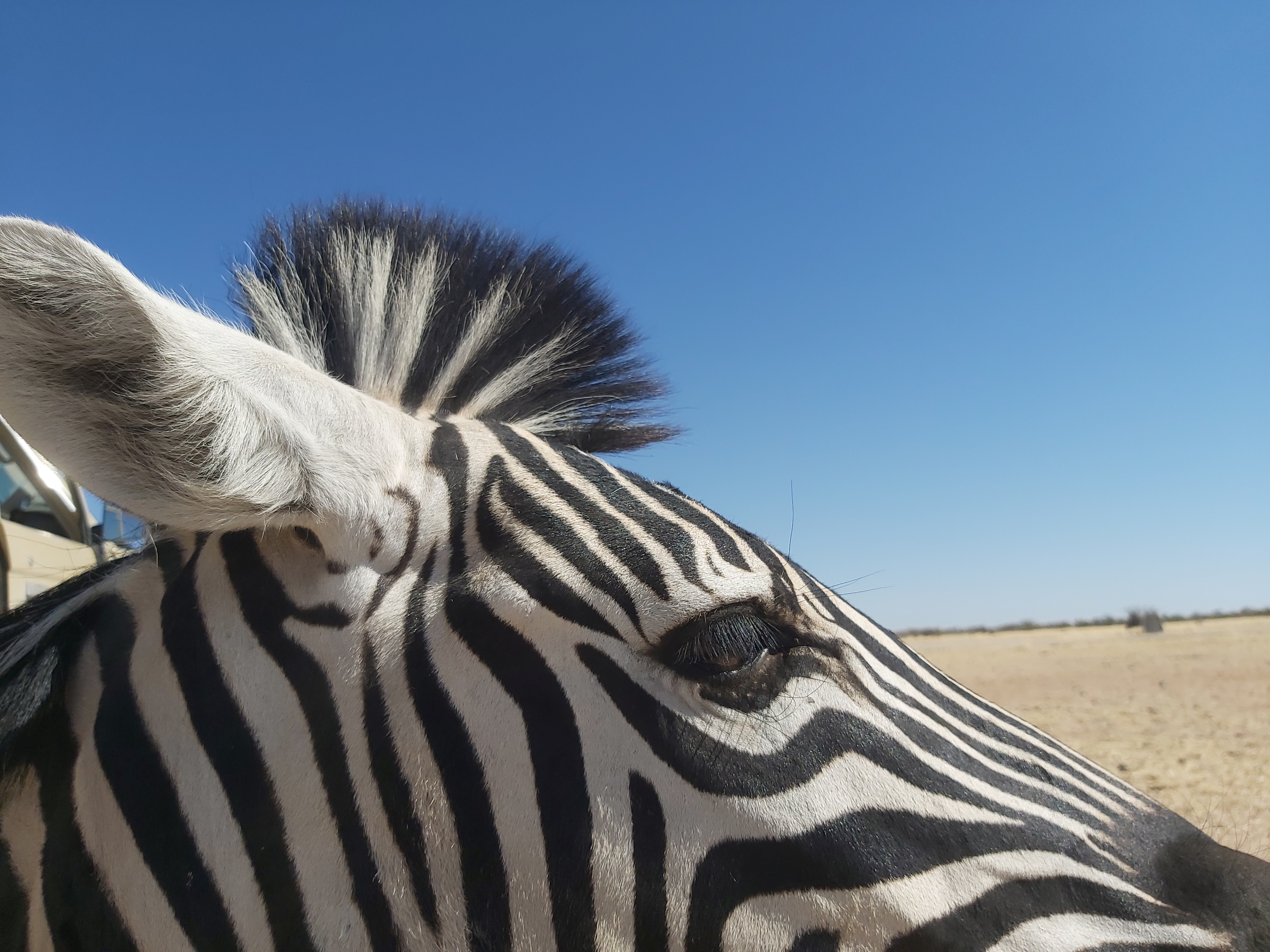 The mane on the neck is a health indicator of the zebra. If it stands erect, it is a sign for good condition whereas a flopped-over mane indicates stress conditions.